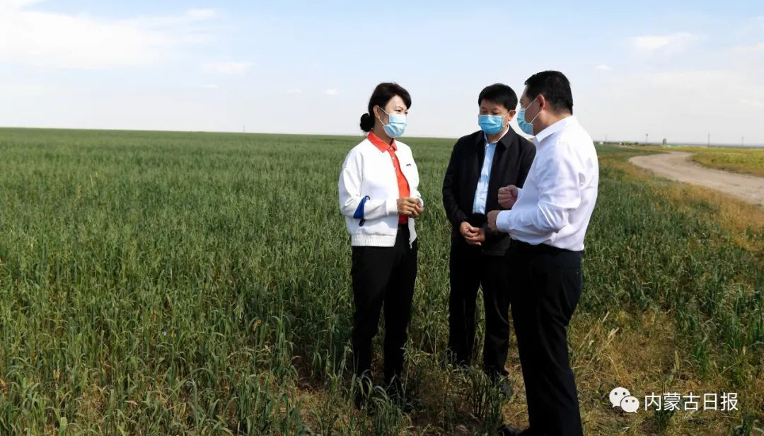 9月15日,王莉霞实地查看察汗淖尔湿地周边水改旱实施情况。记者 韩卿立 摄